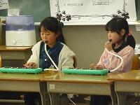 今回は、始めに1年生と4年生の発表がありました。1年生は、「アイアイ」を元気に歌いました。また、4年生は、「アラホーン パイプ」と「ラ クンパルシータ」を木琴と、笛、鍵盤ハーモニカなどで演奏しました。そして、最後に、みんなで「栃木市民の歌」を歌いました。
