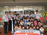 6月3日、踏切安全教室を実施しました。東武鉄道の方々手作りの模擬踏切を使って、実際に踏切を渡ってみたり、駅の表示板や標識などに触れたりしながら、電車の楽しさと気をつけなければならないことを学ぶことができました。大型テレビに映し出された画像や、クイズ形式の説明が1年生にはとても好評で、3種類のスペーシアが映し出された時には、大きな歓声がおこっていました。