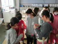 山本総本店の3名の職人の方々に来ていただき、和菓子作り体験をしました。職人さんの技を目の前で見ることができ、子どもたちから歓声があがりました。その後作り方を丁寧に教えて下さり、子どもたちは保護者の方と協力しながら、素敵な和菓子を作ることができました。体験の後は、自分たちが作った和菓子をとてもおいしそうに食べていました。家庭では和菓子の材料を準備することができないので、保護者の方にも大変好評でした。