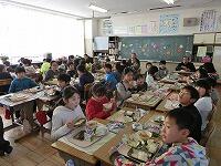 感謝の会の後には、各教室に分かれてボランティアさんと会食を行いました。楽しく会話をしながら食べた給食は、とてもおいしかったです。