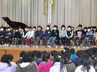 6年生に日ごろの感謝の気持ちを伝えようと、各学年、工夫をこらした出し物や呼びかけを披露しました。会の最後には、6年生と在校生がふれあう時間が設けられ、和気あいあいとした雰囲気が感じられました。