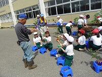 5月19日(木)、3年生は田植えに挑戦しました。地域の 永島 仁一 様 に、田んぼの先生になっていただき、