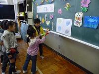 5・6年生の総合的な学習の時間発表の様子 子どもたちの作品展示