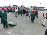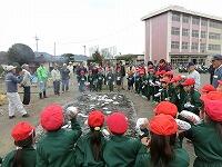 100名程のお年寄りの皆さんが学校に来てくださり、子どもたちと共にサツマイモを火床に入れてから、1・2年生とおじいちゃん・おばあちゃんの連合チーム8チームで、輪投げや玉入れを行いました。 おじいちゃん、おばあちゃんが、1・2年生に投げ方のコツを教えてくださったり、励ましの声かけをしてくださったり、子どもたちがお年寄りのプレーに拍手を送ったりと楽しい時間を過ごすことができました。また、ゲームの後は、焼きたてのお芋をみんなで一緒に食べました。