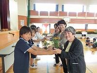 ドッジビー 長縄跳び 代表して静和の6年生が感想発表