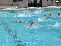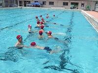 低学年は、水慣れ・水遊び、3年生からは、けのび・バタ足、クロール、高学年は、クロールや平泳ぎ、背泳ぎなどコース別に練習を行っています。