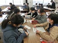1月30日(水)、5年生は、ミシンボランティアの皆様にご協力いただきながら、家庭科の授業で「ナップザックづくり」を行いました。始めにミシンの使い方について学習し、その後ナップザックの仮縫いをしました。そして、仮縫いが終わった児童から、ミシンを使っての作業を行いました。