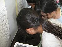 理科の授業で、チョウのたまごと幼虫の観察をしました。