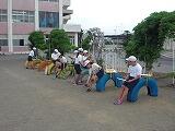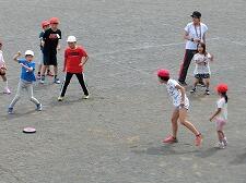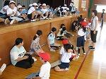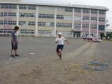27日(月)、6年生が1年生のシャトルランの手伝いをしました。