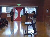作文発表。代表児童が3学期に頑張りたいことを発表しました。
