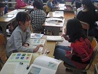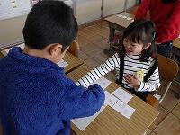 道徳では、友達と自分の考えを交流中です。
