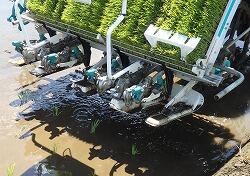 田植え機を使って苗を植えていきます。植える前の苗は、高さ10cmほど。