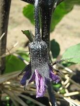 ナスの花です。花のまんなかに赤ちゃんナスができていました!!