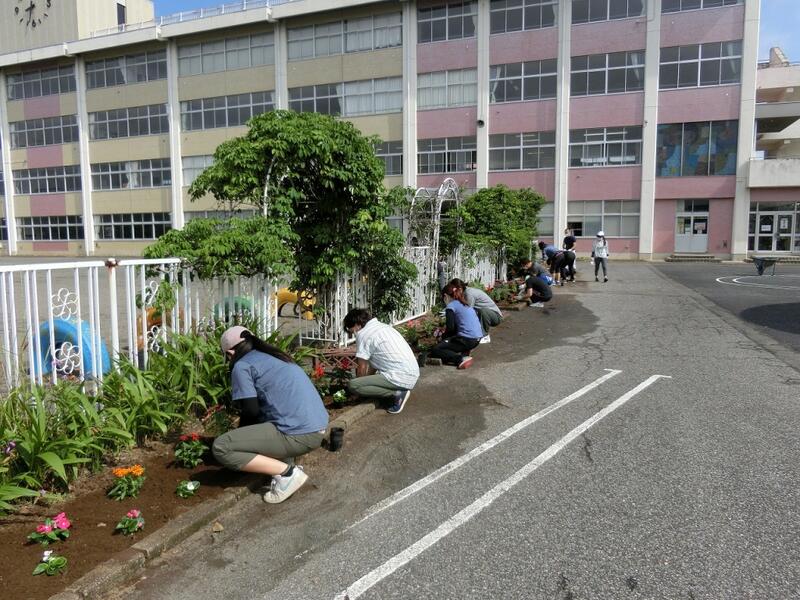 27日(水)朝、休業中の児童にかわり、教職員で植え付け作業をしました。