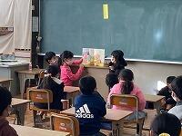 国語の授業のひとつとして、朝のさわやかタイムに3年生は1年生に読み聞かせを行っています。
