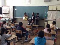 国語の授業のひとつとして、朝のさわやかタイムに3年生は1年生に読み聞かせを行っています。
