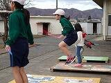 縄跳びの練習をしている児童が増え、練習台も人気です