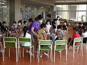 1年1組ではじゃんけん大会や紙芝居、1年2組では○×クイズを行いました。
