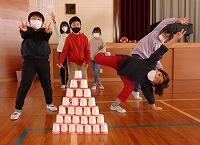 クリスマスにちなんだゲームをしたり、アルファベットが書かれたコップを順番に並べたりと