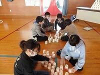 クリスマスにちなんだゲームをしたり、アルファベットが書かれたコップを順番に並べたりと