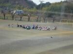 校庭で遊んでいた子どもたちは、皆、校庭中央に集まり姿勢を低くしました。