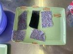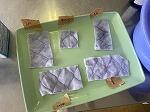 洗濯(手洗い)をするとどのくらい汚れが落ちるのか、「1日前の汚れ」と「直前に付けた汚れ」の時間の経過での比較実験を行いました。汚れは「絵の具」「墨汁」「しょうゆ」「油」「お酢」の5種類で調べました。洗濯をすることで、汚れや匂いが落ちたものもありましたが、きれいに落ちきらなかったものもありました。一番落ちにくかったのは「墨汁」です。また、時間が経過するほど、汚れを落とすことが難しかったようです。子どもたちからは、時間の経過だけでなく、汚れを付けた布の素材や洗剤の種類等でも調べてみたいといった振り返りも出ました!