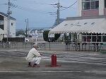 やる気満々の職員の気持ちとは裏腹に、児童登校の時刻には、また雨がぱらぱら・・・