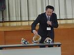 最後に、校長先生から、大谷翔平選手から届いたグローブについて紹介がありました。使い方については、6年生が話し合って決めます。