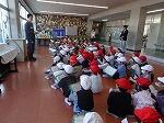 2年生の司会で、先生の話をよく聞き、探検スタートです!!