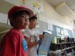 探検の後は、2年生から1年生へあさがおの種のプレゼントがありました。
