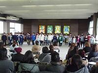 6年生合奏 「ス・ワンダフル」 全校合唱「世界中の子どもたちが」 カレンダーの贈呈
