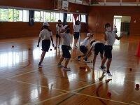後半の、玉投げゲームでは相手コートに必死に玉を投げ入れる姿が見られ、