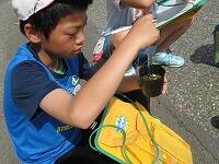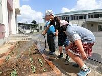 休み時間に、ホウセンカの水やりをしていた児童が、