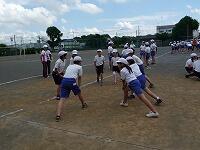 チームごとに準備運動 タグラクビーの様子