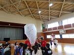 4年生が作った気球が宙に舞うと子どもたちは大喜び!