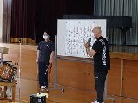 今日は岩舟武蔵太鼓の方にお越しいただき、和太鼓演奏会、実技体験を行いました。