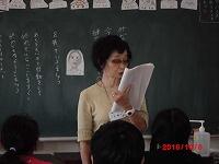 子どもたちは、九輪草の会の方々のしっとりとした語りに引き込まれ、熱心に聞いていました。