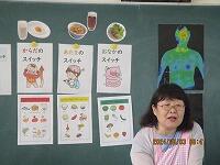 「おやつの時間は…食事の2時間前までに。」「パッケージの見方…たくさんの情報が入っている。」「運動量ゲーム…200㎉消費するには縄跳びなら40分。」「おやつの選び方…食べ物と飲み物を一緒にとって200㎉にしよう。」などおやつについて楽しく学習することができました。