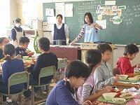 栃木市で作られているトマトについて教えていただいたり、給食を一緒に食べたりと交流をしました。