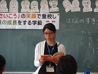 6月8日の朝の読み聞かせの様子です。毎週木曜日の朝には、九輪草の会の方に