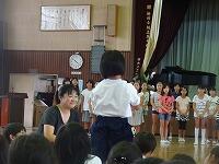 会の最後は6年生から1年生へ、折り紙の花が贈られました。とても美しい青いバラです。1年生はとても嬉しそうでした。
