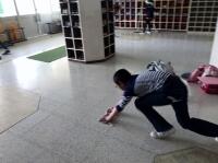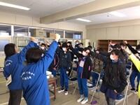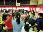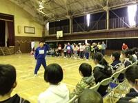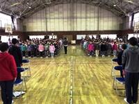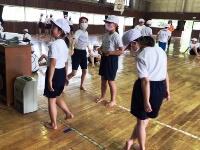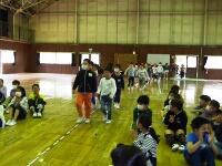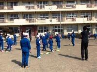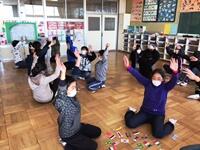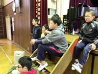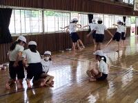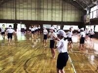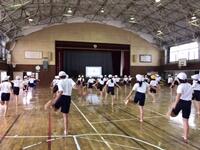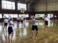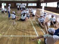 体育館で、5,6年生が何やら見ながら、体を動かしています。