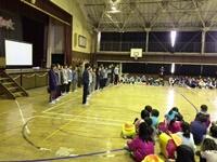 すると、その後の全校集会でなんと、6年生の書いた漢字二文字について、校長先生が紹介してくださいました。