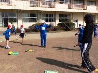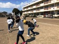 外国語の時間は、今日も元気よく、体を使ってのコミュニケーションからスタート。