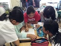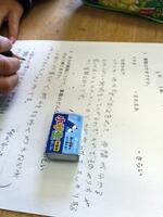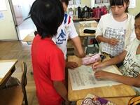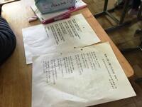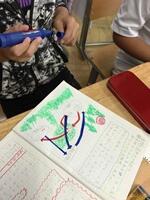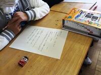 今日は、外国語の時間に、グループごとに、物語の簡単な台本作りをしました。グループごとの物語は、