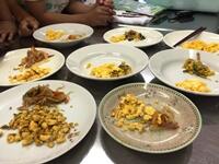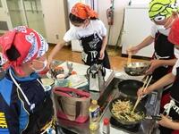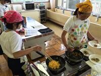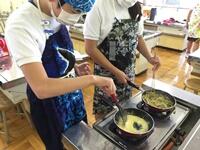 午後には、調理実習を行い、マカロニナポリタンとポテトサラダを作りました。できあがった料理をみんなおいしく食べました。