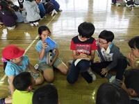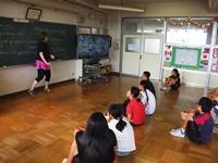 今日の外国語活動は、会話の練習や物語をつくる活動の続きをしました。