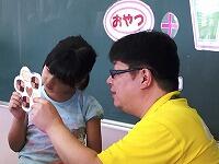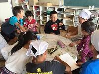 まずは、教室でローマ字の復習。グループで協力してローマ字の学習です。