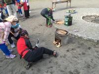 火おこし体験の後は、起こした火を使って、杉板焼きを行いました。