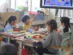 本日3、4時間目に家庭科室で親子交流学習が行われました。リースづくりの様子です。